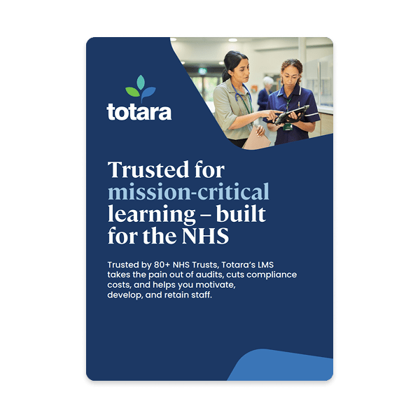 Built for the NHS, Totara’s LMS takes the pain out of audits, cuts compliance costs, and helps you motivate, develop, and retain staff.