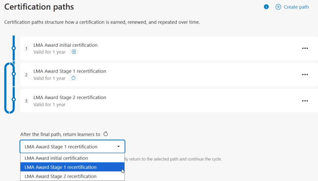 It’s now easier for admins to set the first steps of a recertification pathway. A drop-down option now allows admins to easily and intuitively assign the first steps of a reassignment pathway.